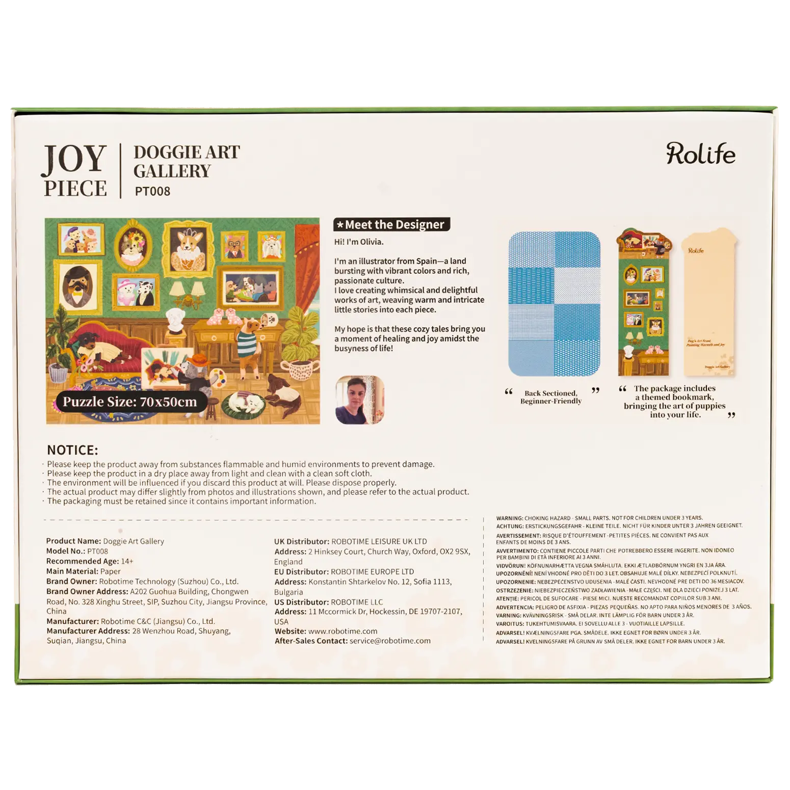 Bestel dan nu jouw Rolife Doggie Art Gallery puzzel en geniet van een creatief avontuur vol humor en stijl. Perfect voor puzzelaars die houden van kunstzinnige details en een uitdagende legpuzzel!