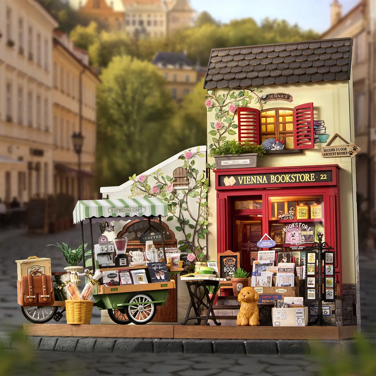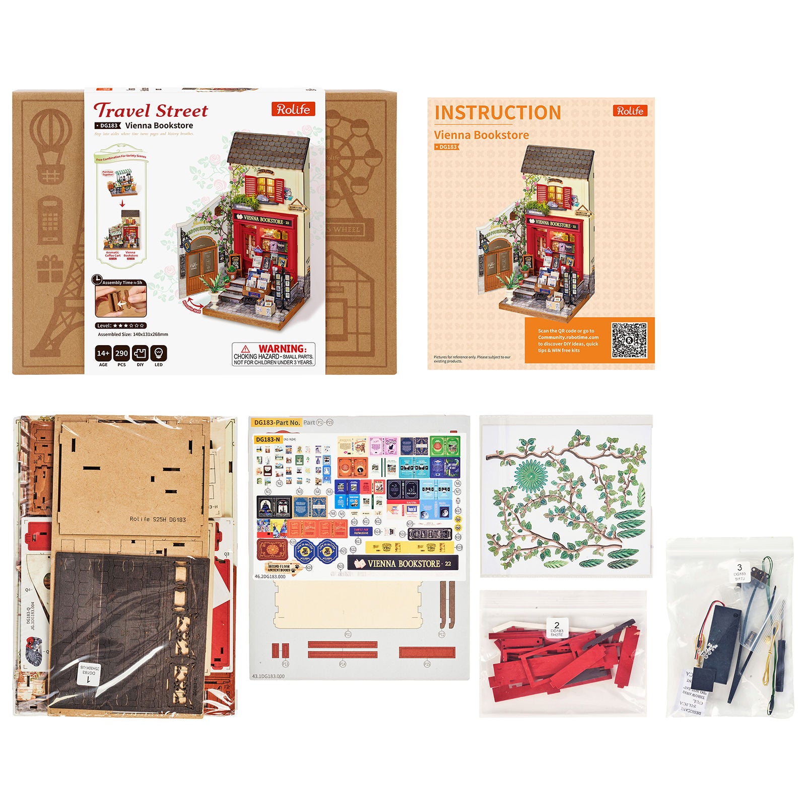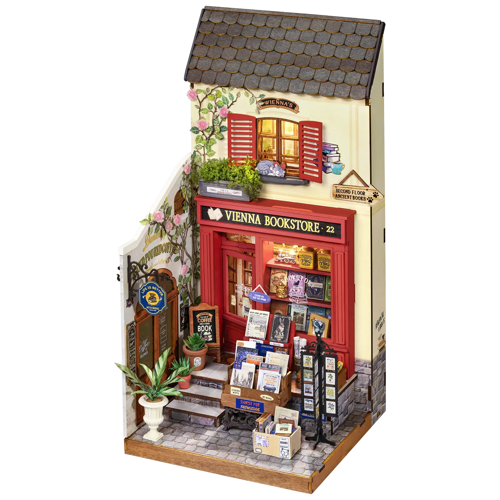 Maak nu het charmantste hoekboekwinkeltje van Rolife met een miniatuurhuisje in houten bouwset