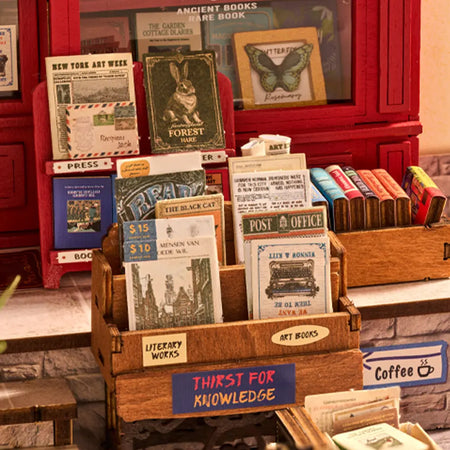 Want als je de smaak te pakken hebt, eerlijk? Dan wil je meer! Natuurlijk wil je de bijbehorende Aromatic Coffee Cart. Maar er zijn nog veel meer miniatuurhuisjes die erg leuk bij jouw nieuwe boekenwinkeltje passen. Je kunt zelfs een straatje maken van book nooks of andere tafereeltjes met onze knutselpakketten. Zo bouw je een unieke miniatuurwereld vol leven en creativiteit. Dit miniatuurhuisje is een prachtige toevoeging voor je collectie in je vitrine en is ook geweldig leuk als cadeautje!